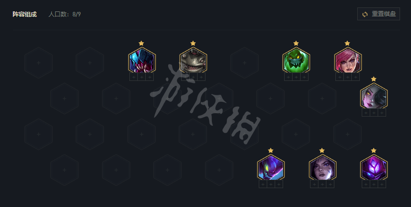 前期可以用俄洛伊,挖掘机,卡萨丁,蚂蚱,3变异2格斗过度,装备先给蚂蚱打工。也可以用约德尔黑魔过度,经济会好很多,要吃有3赏金也可以直接连败赏金。
