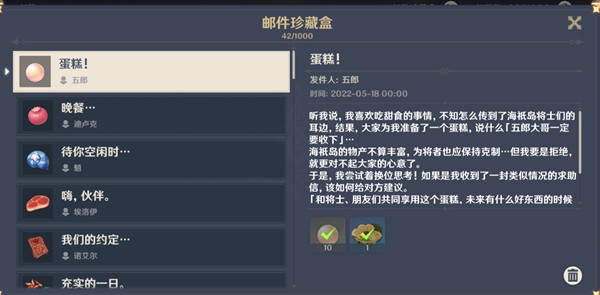 2022原神五郎生日邮件内容一览:
