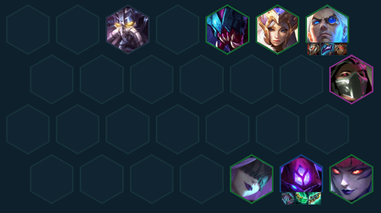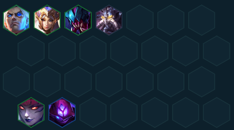 阵容组成:卡萨丁(1)、雷克塞(2)、瑟庄妮(2)、斯维因(2)、烈娜塔(4)、辛德拉(2)、玛尔扎哈(3)、婕拉(2)