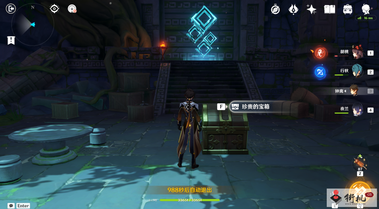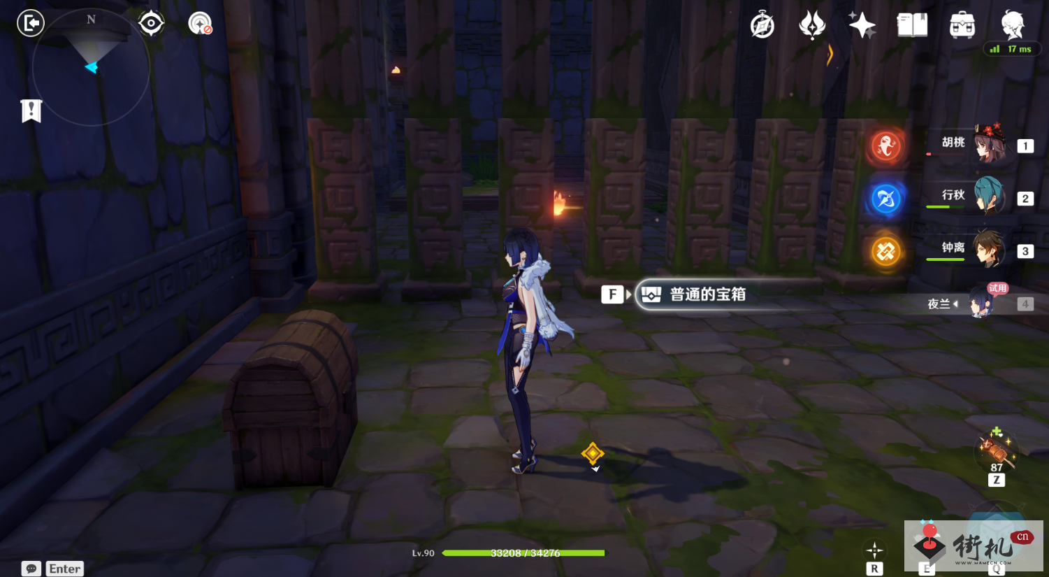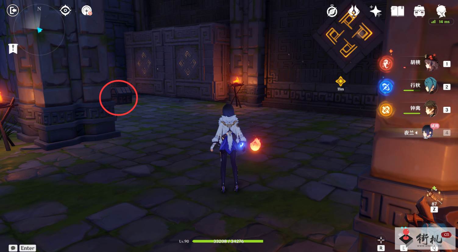 在遗迹空间中连开两扇门后可以看到的石栏杆后的普通宝箱,这里是宝箱④。