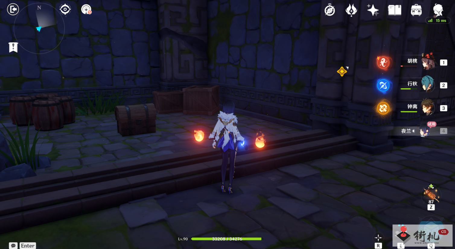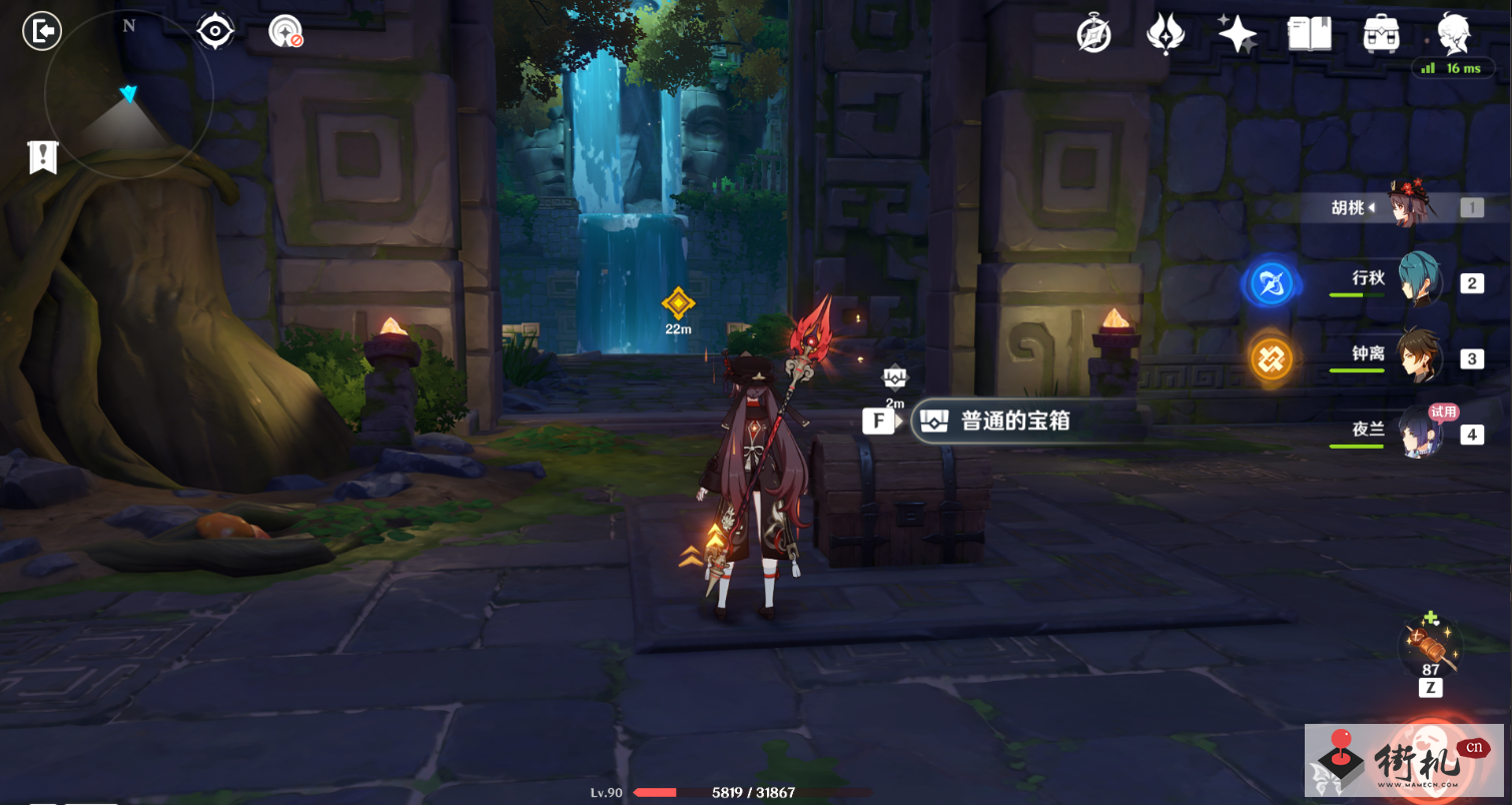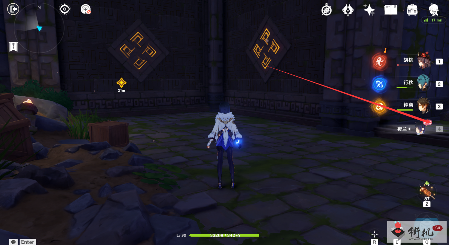 在遗迹空间中连开两扇门后可以看到的石栏杆后的普通宝箱,这里是宝箱④。
