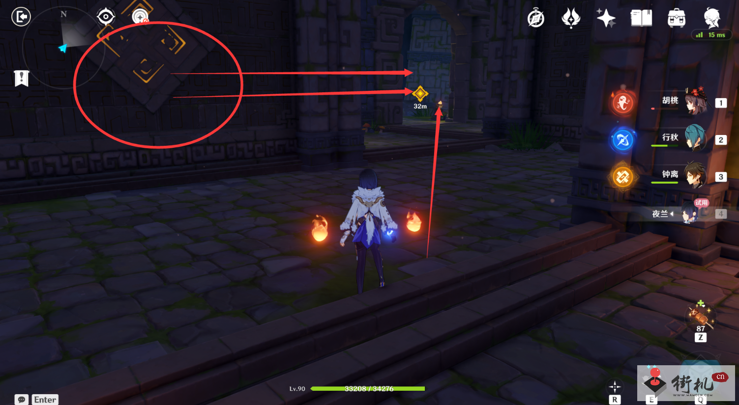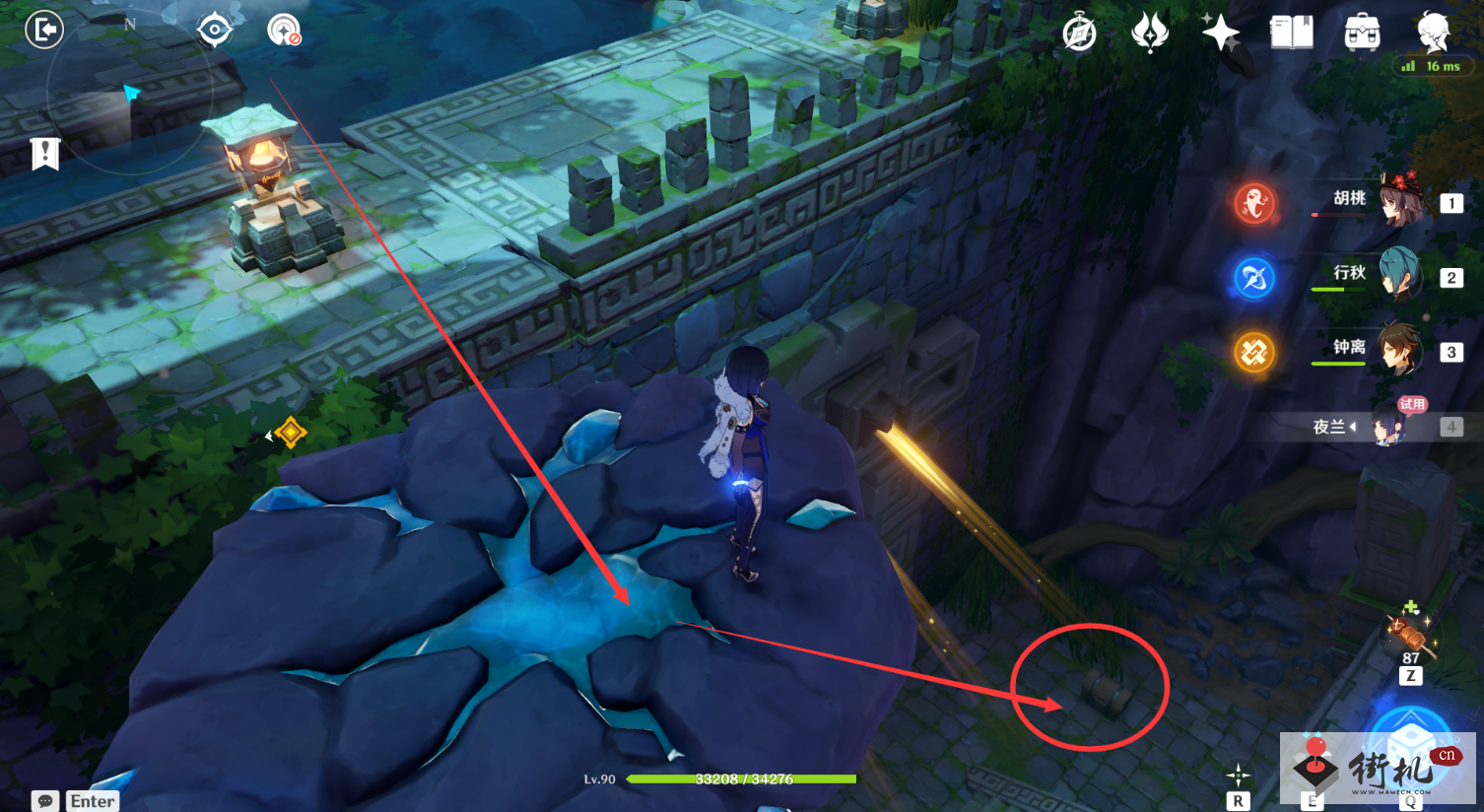 在上一个解密解开后,可以在石板机关下方找到一个宝箱,这是宝箱③。