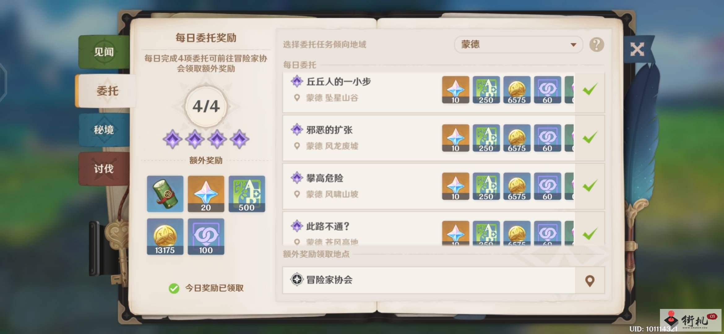 半个版本按常理有21天,每日委托可以拿21×60=1260原石,虽然一天只有60原石,但作为白嫖党的主要原石收入来源,大家可别忘记做哈~