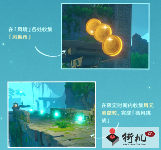 2、获得期间有5个不同的秘境等待玩家们探索,进入秘境后,玩家们需要寻找在终点的同时收集“风循币”,并且尽可能的完成风禁中的循风挑战。