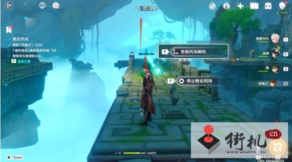2.触碰大元素微粒,开启限时挑战,收集风元素微粒!先停止附近风场,再变换风场朝向,即可往上飞,拿到风遁币,并飞到对面平台。