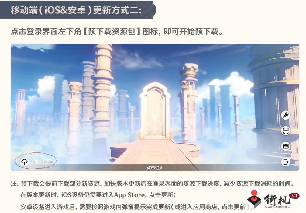 移动端进行预下载,会提前下载部分新资源,加快版本更新后在登录界面的资源下载进度,减少资源下载消耗的时间。