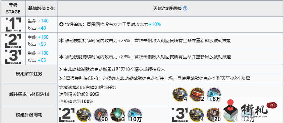 明日方舟异格德克萨斯精二专三模组材料表统计
