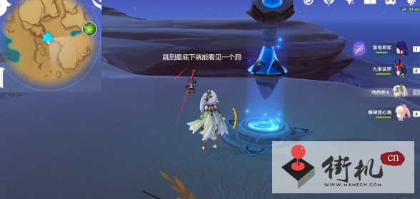 4、来到传送点朝着地图的东南方向走到悬崖,直接跳到最底下,然后在我们左手边就有个山洞进去