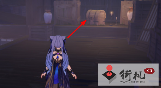 3、在如图所示的机关往回看我们就能找到宝箱。