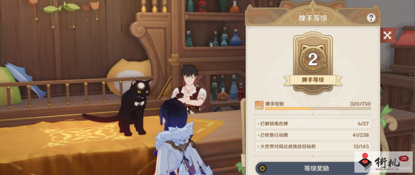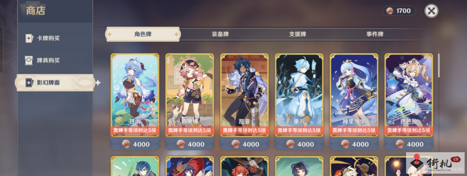再去【小王子】那里,就是图上的那只黑猫那里,打开卡牌商店,兑换影幻卡面。