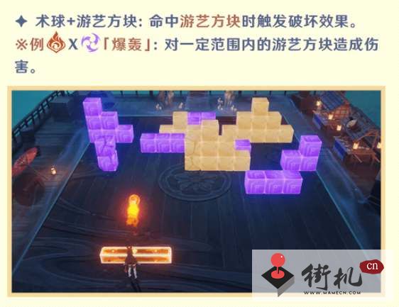 2、利用弹板和球的元素反映可以带来各种不同的效果,比如火元素加雷元素可以对命中的方块造成范围伤害;