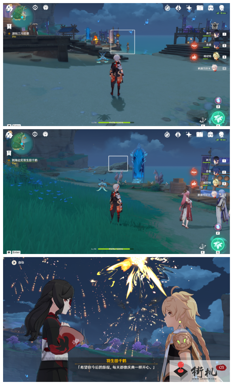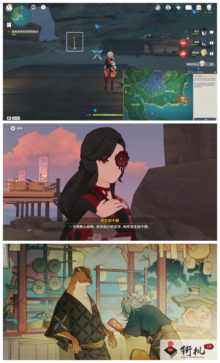 14、往东北方向走,与礁石上的[羽生田千鹤]对话。