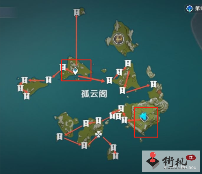 孤云阁这边也有大量星螺,但是因为地图太破碎被分为了两条路线。