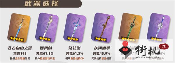 西风剑:提供了高额的元素充能,优化琳妮特的能量循环,建议选择暴击头。