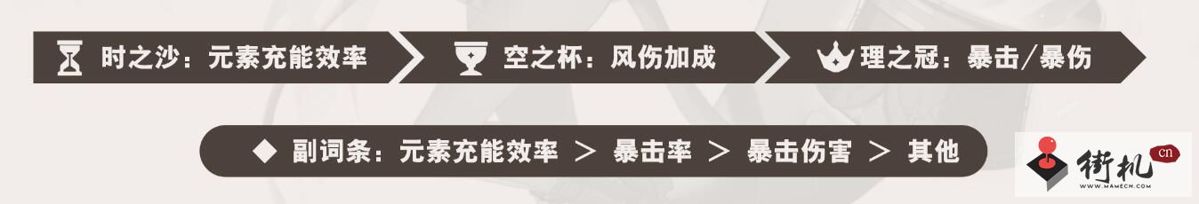 注意:单风辅助,推荐充能效率推荐堆叠至230%及以上,双风时可在200%左右。