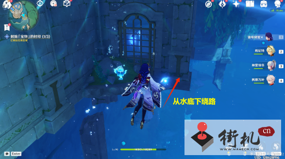 6、之后就需要来到第三处机关处,还是跟着加速水环指引就可以找到;