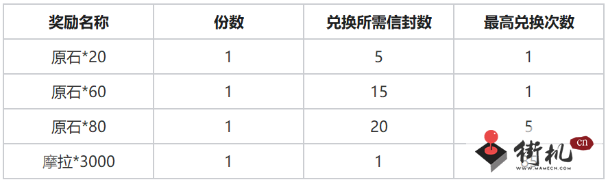 4. 旅行者获得信封后,可以根据所需信封数兑换不同梯度的原石、摩拉奖励。
