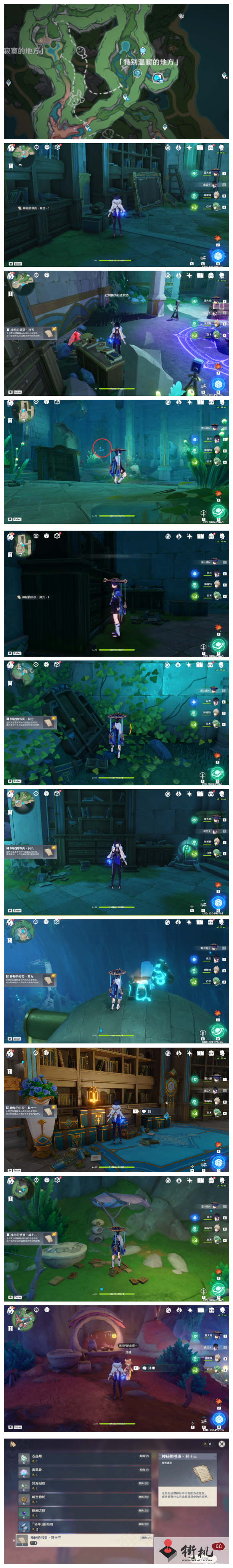 【古老的颜色】、【水仙的安】、【水色潮痕】、【秘海揭示之书】并解锁特殊传送点【夏诺蒂拉与揭示之书】和【水仙十字结社】后再来进行神秘的书页收集/查漏补缺。