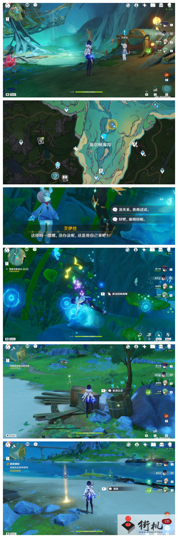 6、对话结束后需要调查线索地点,靠近等激活回响海螺,然后前往标记处逐一寻找;