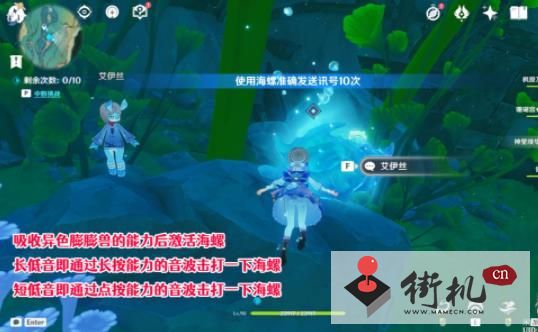 2、接着我们吸收异色膨膨兽的能力后激活海螺,按照艾伊丝教我们的信号顺序发送即可