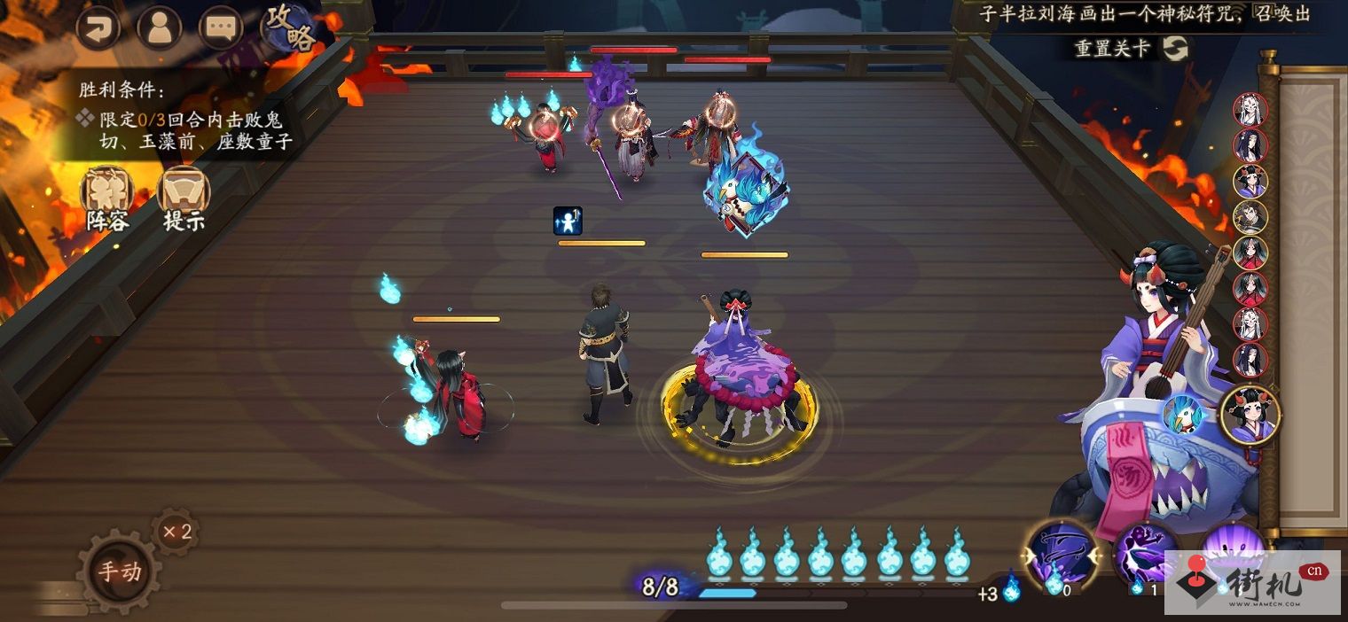 胜利条件:限定0/3回合内击败鬼切、玉藻前、座敷童子