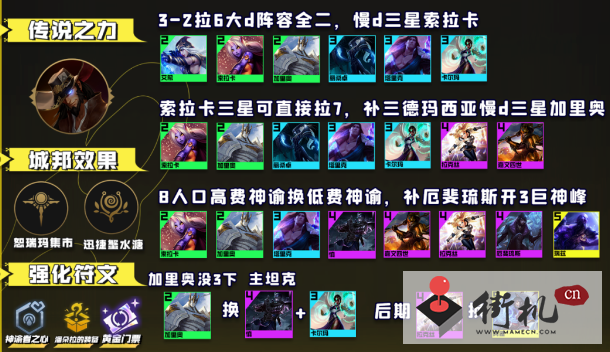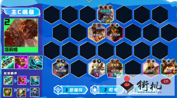 2、阵容羁绊:3怒瑞玛3司令3德玛西亚