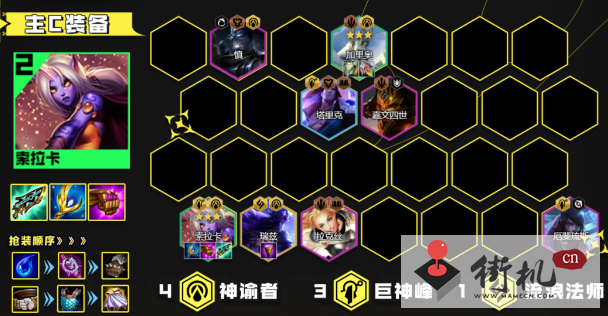 2、阵容羁绊:4神谕者3巨神峰31流浪法师