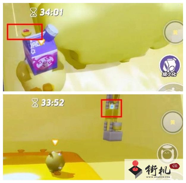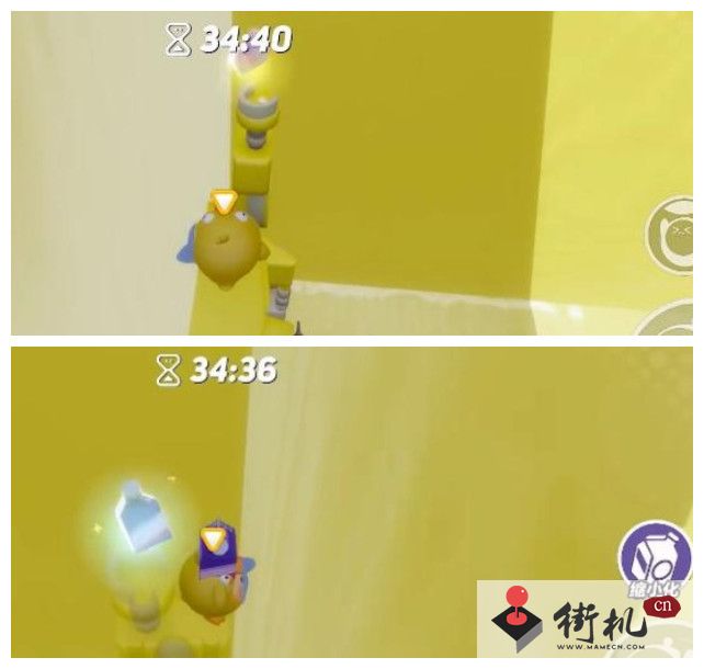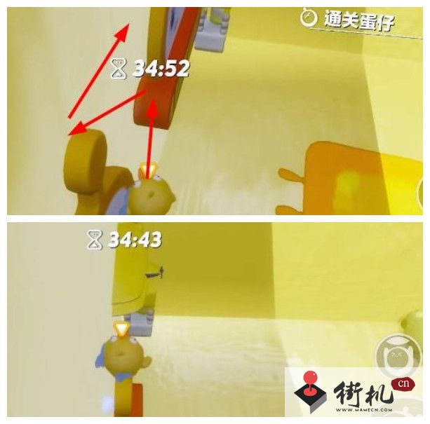 1、进入关卡以后,现在地图上找到下图的弹射机关,然后落到对面的黄色头套顶部。