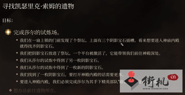 1、玩家要想进入神殿内部,就必须完成莎尔为手下精英部队“暗夜法官”设立的试炼,试炼一共有三个,分别是稳步、同我和信仰之跃。