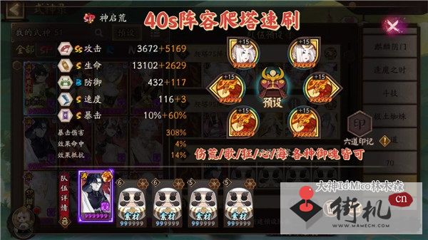 3、难民级别:攻攻爆伤荒/歌/狂/海/心(70暴)各种御魂都可用+4白蛋即可。