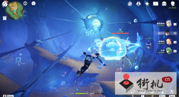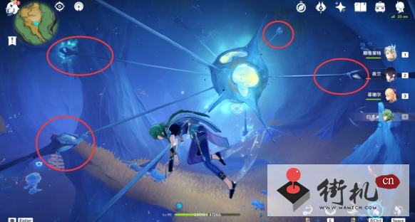 ③借由水母的力量同时炸开堵路生物,继续前进。