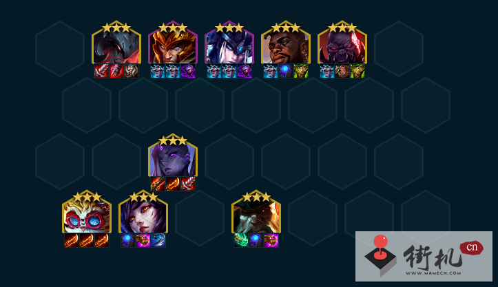 关键来了,正常4-5就可以上到9了,还会有不少钱给大家D卡,这时候我们可以速度找卡,把没用的杂卡卖了,就找五费上场。有猪妹皇子这类也可以抓一抓,皇子给启动偷袭也是非常好用的。 船长一定要用,感觉这时候打架就是前排硬然后靠船长输出,大头没二星没稳住局面可以不上,因为D卡会占用一个位置。因为需求羊刀多,这时候打钱已经不太实际了。塞恩这个模式也可以带输出装备去偷袭后排。