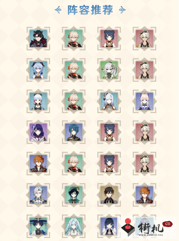 2.根据增益效果,较为推荐冰伤队、反应队与主要伤害类型为普通攻击的队伍等,推荐阵容可参考下图。